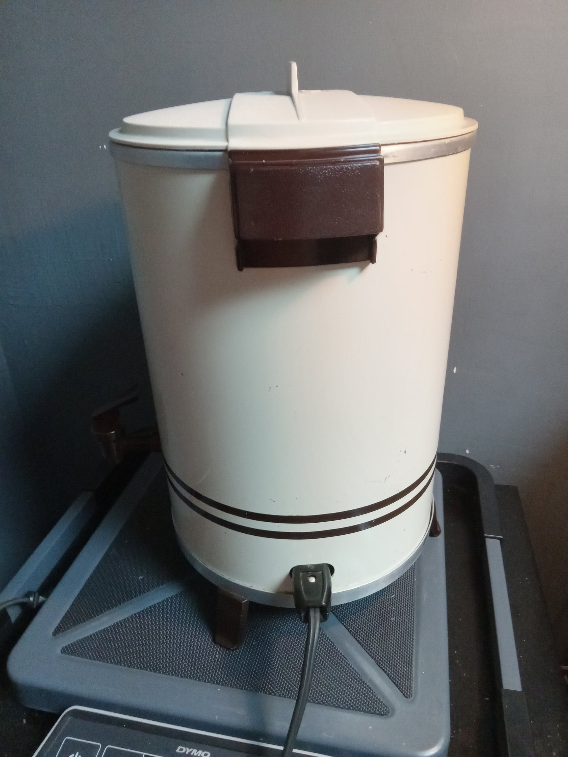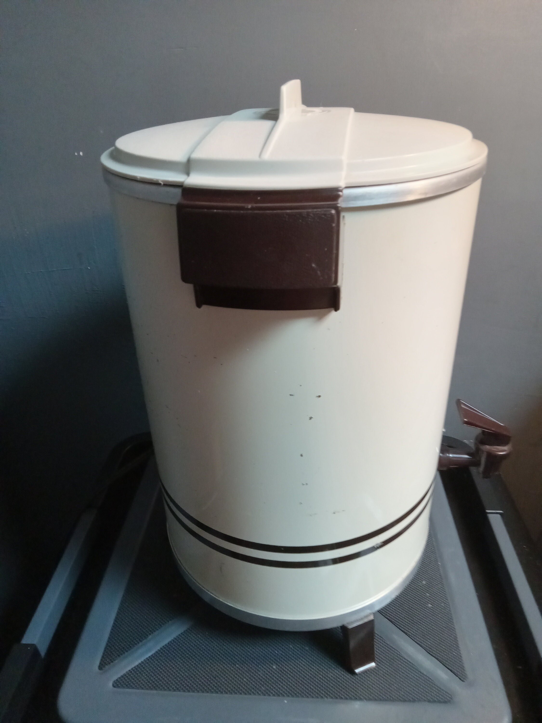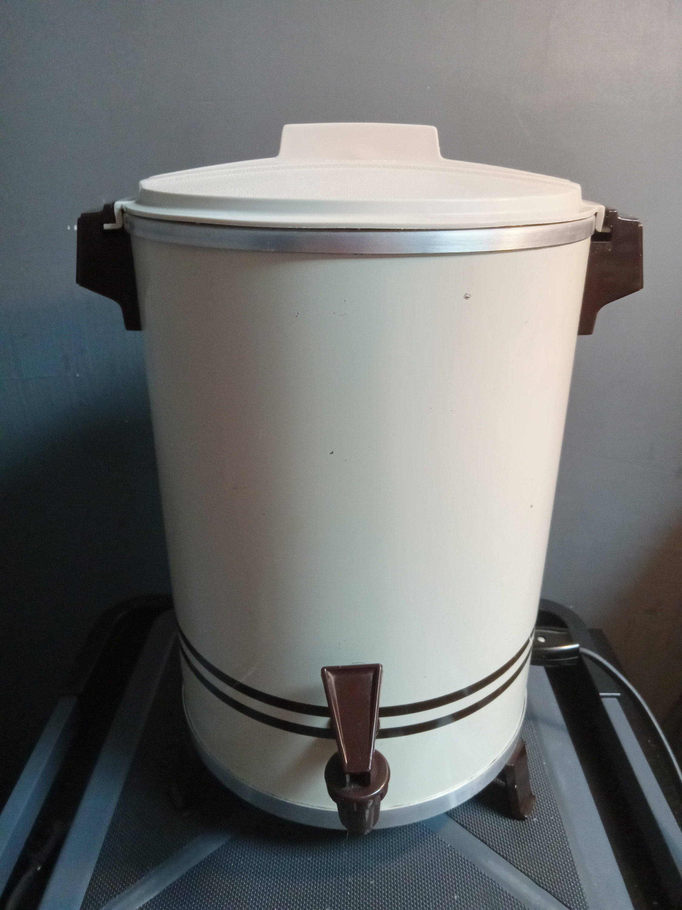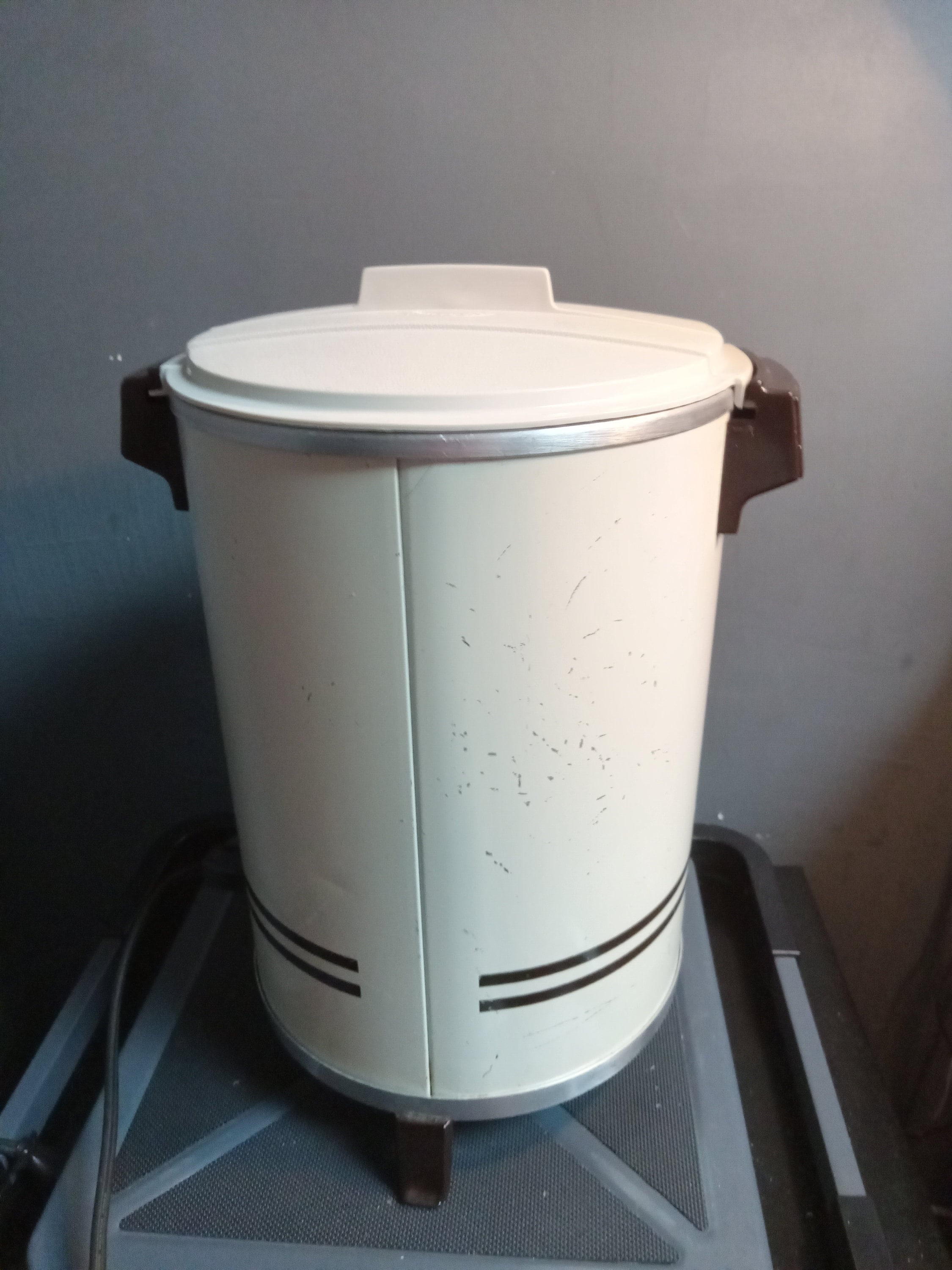 Nice clean insulated percolator makes 12-30 cups of coffee. Stainless steel interior liner for easy cleaning. Has some minor paint wearing but overall it works great and is in good condition. Free Shipping!